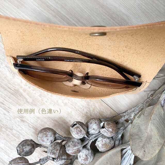 メガネをしっかりとホールド出来るよう、厚みのある革を使用したメガネケース。