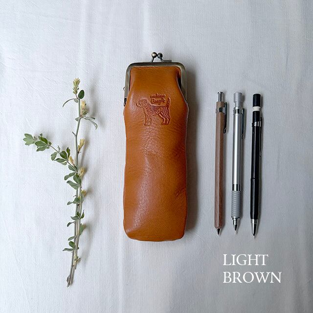 本革が放つあたたかみと、ワンポイントの刻印が魅力のペンケース。