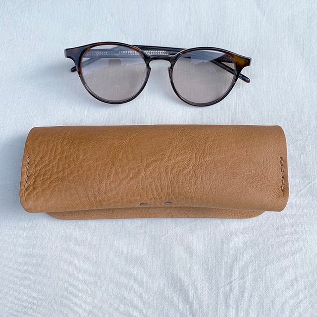 メガネをしっかりとホールド出来るよう、厚みのある革を使用したメガネケース。