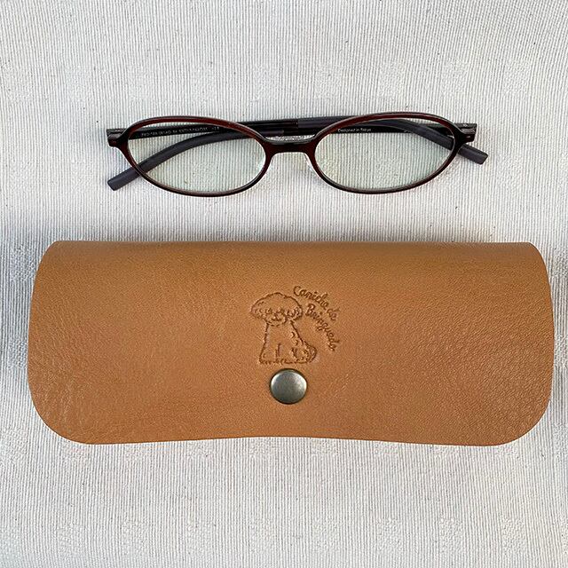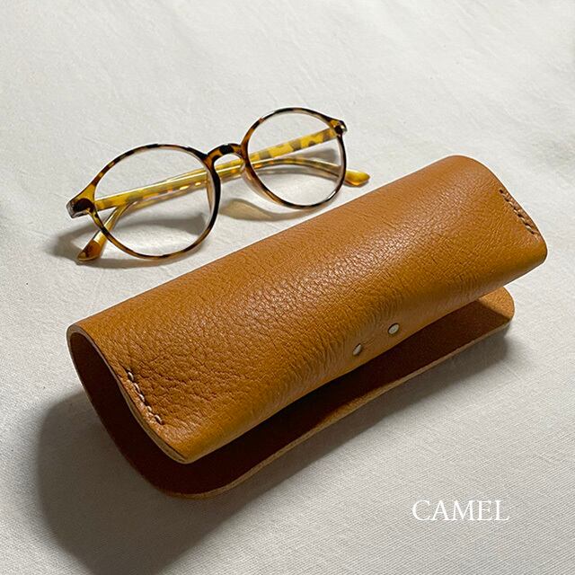メガネをしっかりとホールド出来るよう、厚みのある革を使用したメガネケース。