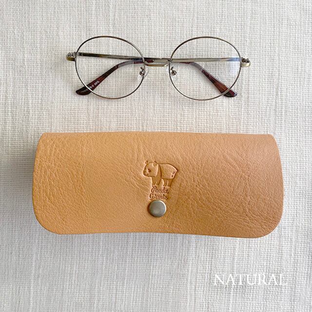 メガネをしっかりとホールド出来るよう、厚みのある革を使用したメガネケース。