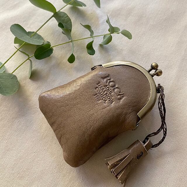 ミニサイズの、タッセル付 がま口ポーチ。