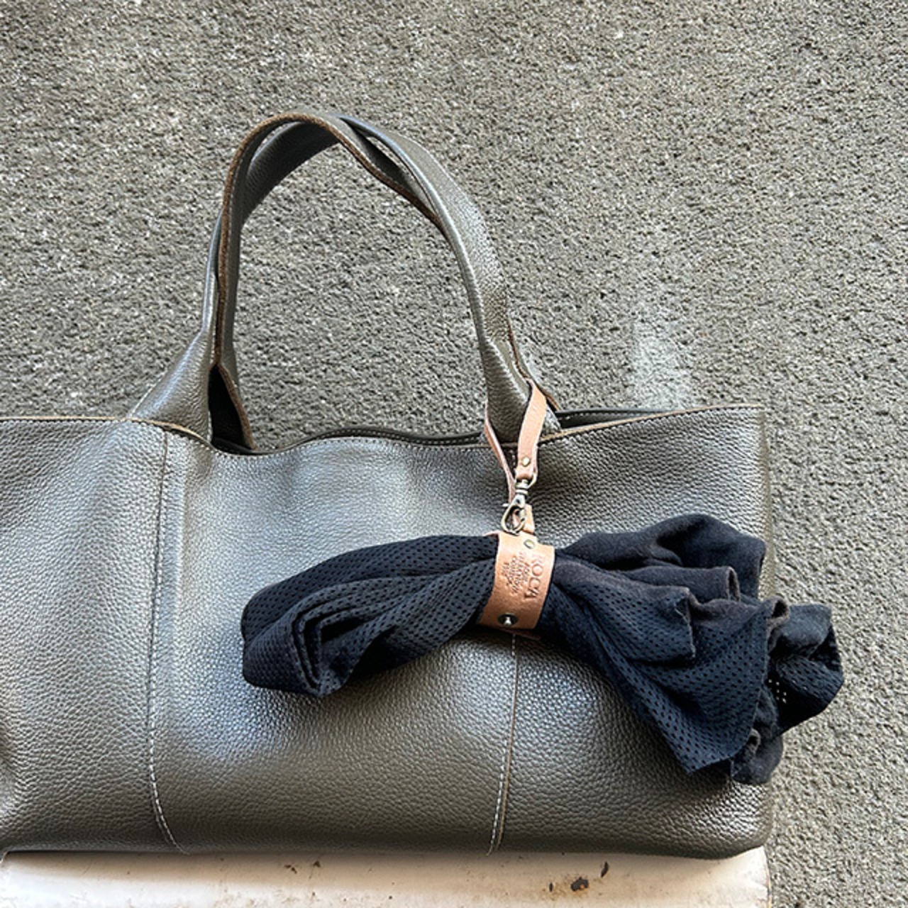 手袋やアームカバー、ハンドタオルなどをバッグの持ち手に装着できるホルダーです。